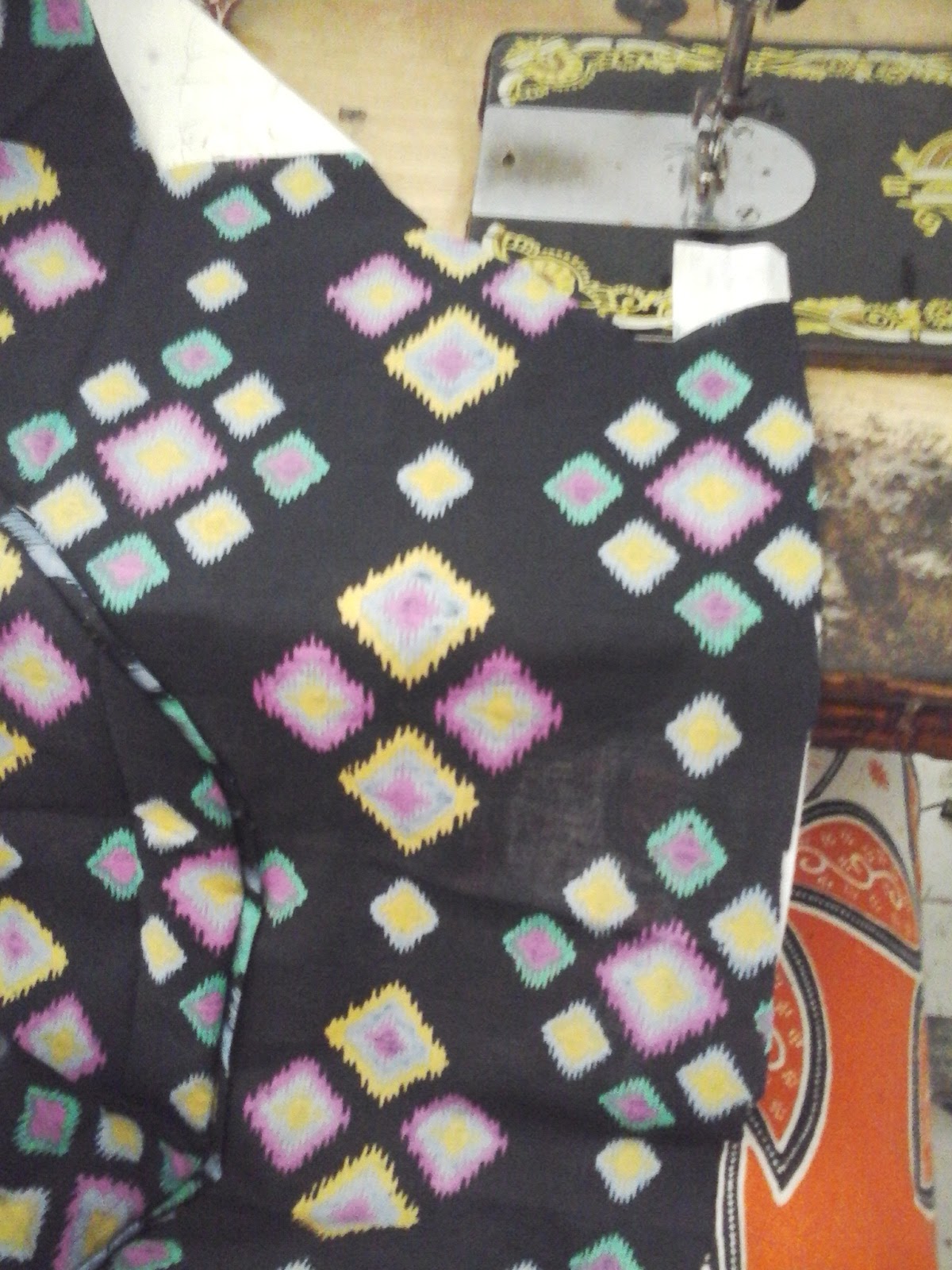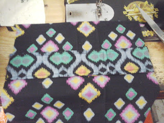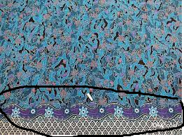 Untuk bisband, saya memotong bagian "Bognya". Bog adalah istilah orang Pekalongan untuk menyebut bagian kain batik yang motifnya berbeda motif dasarnya. Biasanya Bog ini warna atau motifnya berbeda dari motif dominannya. Letak Bog ini biasanya berada di salah satu pinggir kain. Contohnya seperti ini.