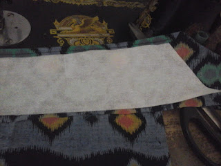 Cara membuatnya mudah. Kita ambil bagian bog kain batik dan letakkan pola lengkung di bagian sisi bog. Jangan lupa siapkan sisa kain perca untuk melapisi bagian dalam bog. Ukuran kain perca disesuaikan dengan lebar pola lengkung kain keras. Urutan tumpukannya adalah Kain keras-kain perca-kain saku. Urutan tersebut bisa dibalik Kain saku-kain perca-kain keras. Bisa juga dengan menggunakan tumpukan kain perca-kain saku-kain keras.