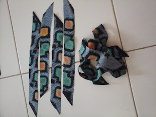 Asessoris berikutnya adalah asessoris lengan. Untuk bagian lengan, saya meniru model lengan jaket cewek. Jadi saya siapkan kain berbentuk persegi panjang.