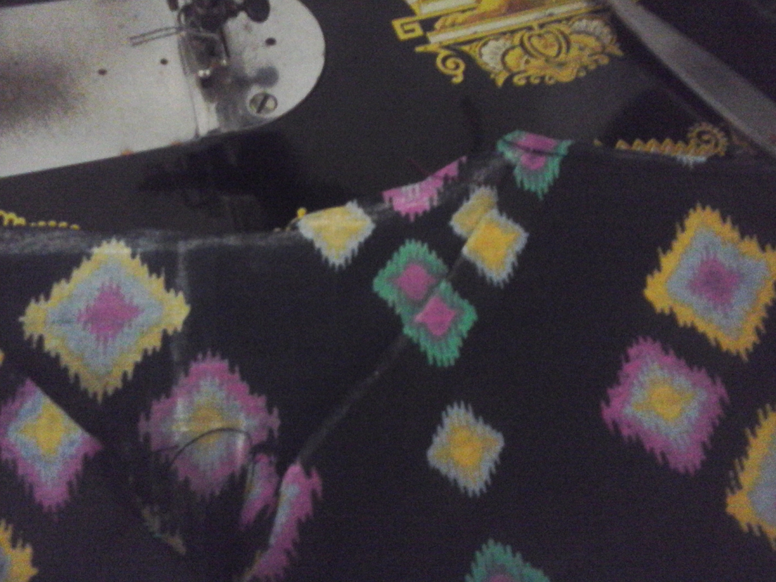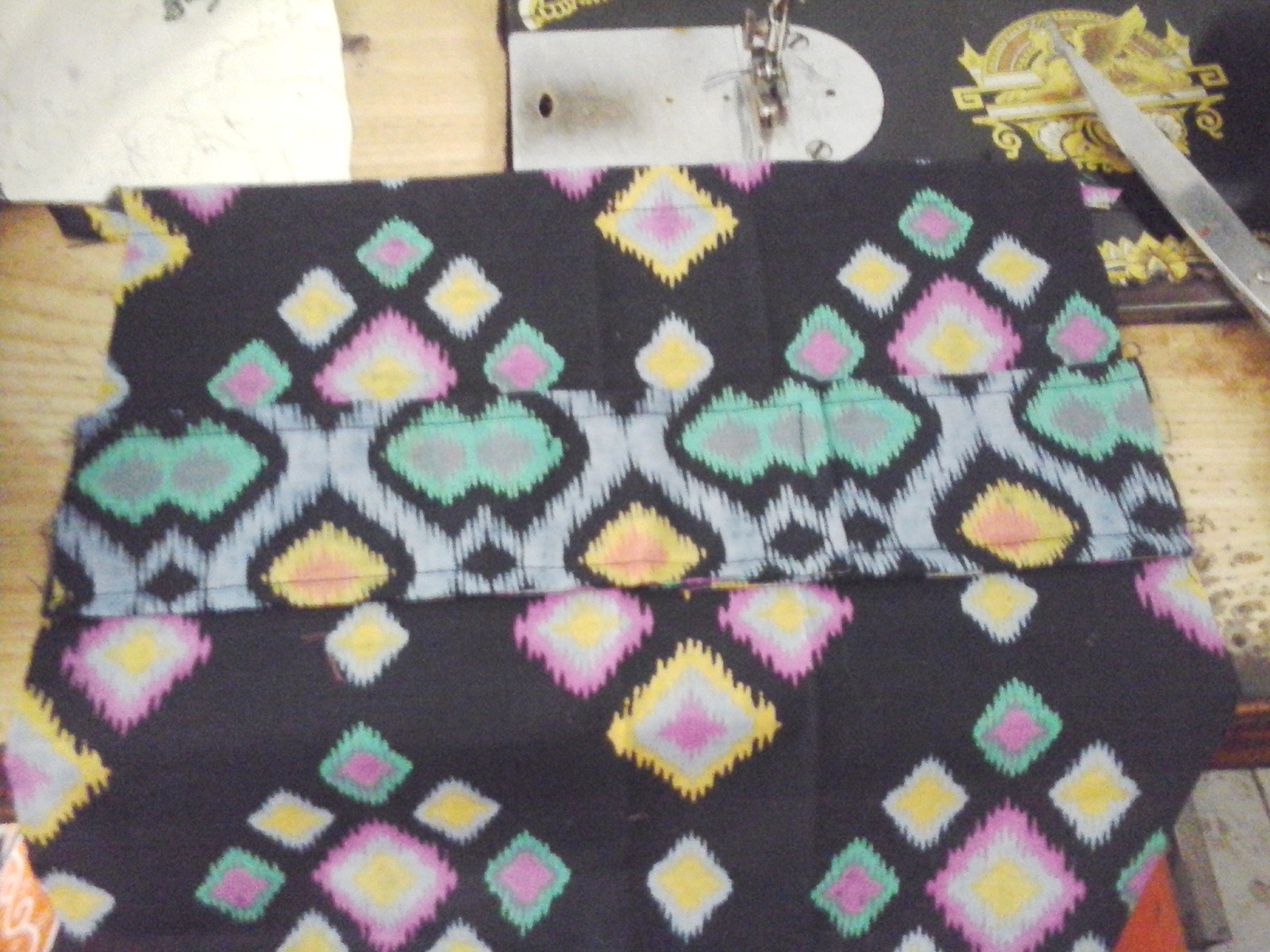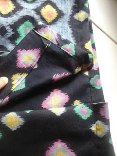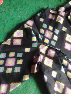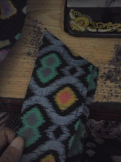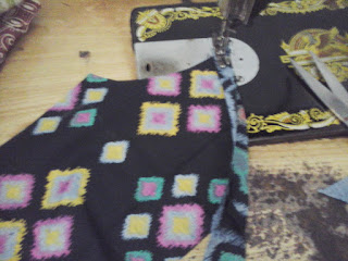 Setelah urut dan dipaskan bagian tepinya, kita bisa langsung menjahit. Jangan lupa perhatikan motif luar dan dalamnya agar agar kelihatan cantik. Hasil jahitannya seperti ini.
