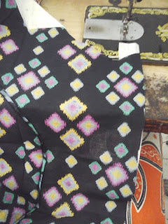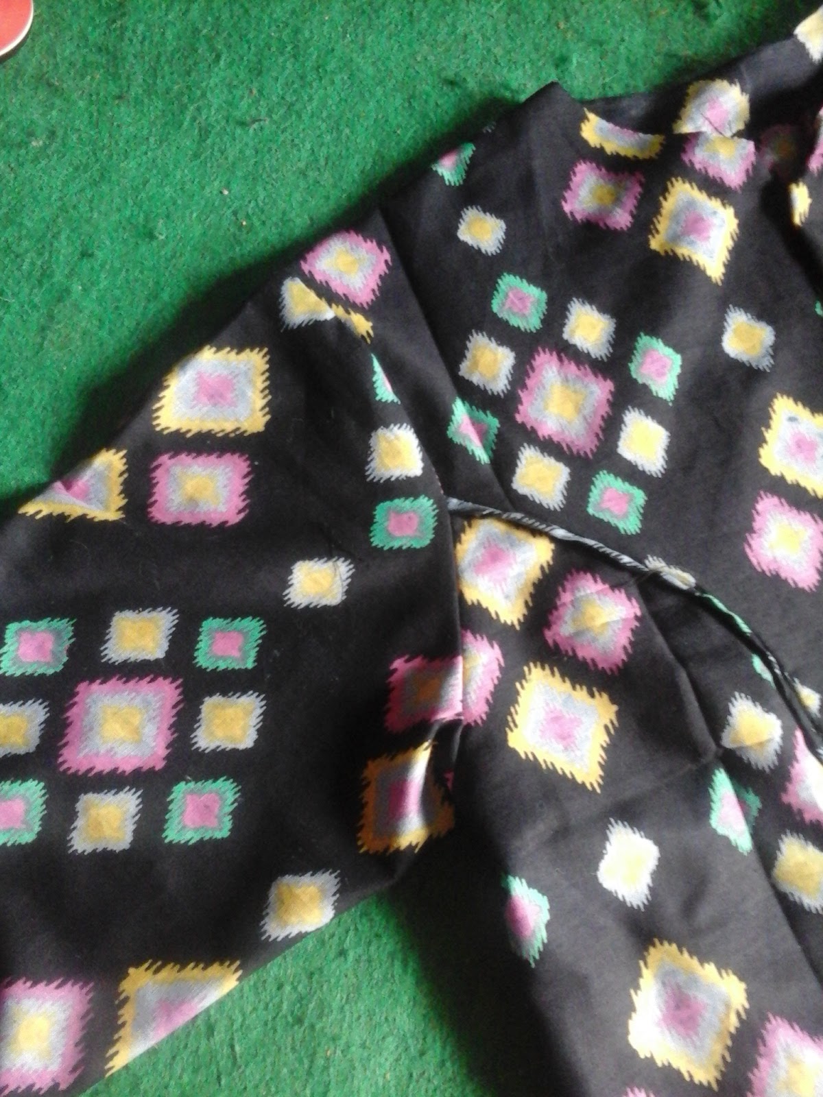 Hasilnya seperti ini.Asessoris yang lain adalah kain keras panjang untuk bagian penempatan kancing. Kain keras ini lebarnya 3 cm dan panjangnya menyesuaikan pola bagian kancing.