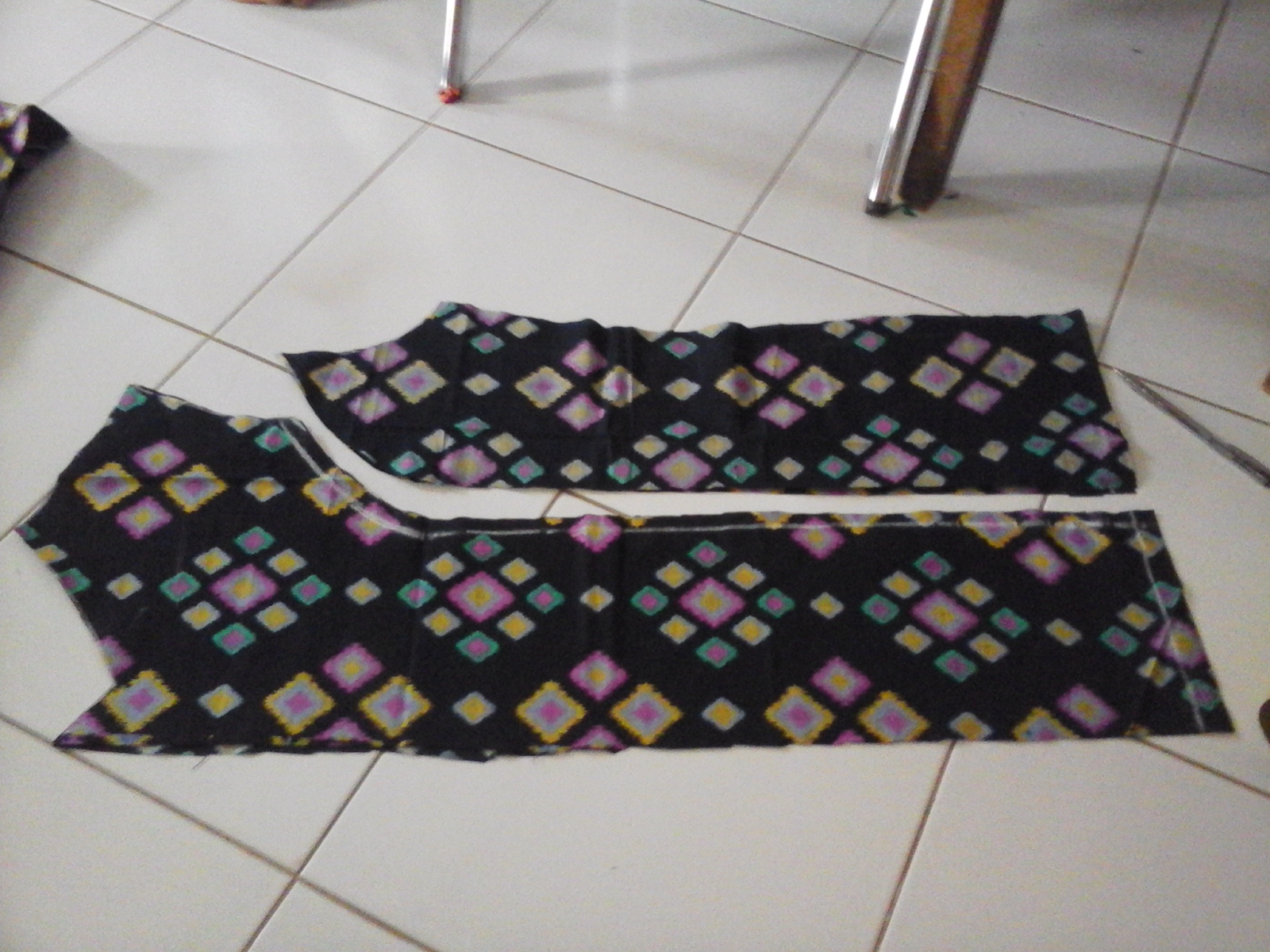 Siapkan kainnya. dan buat pola diatas kain, Baik pola depan maupun belakang.