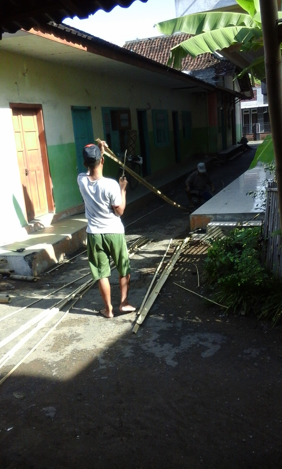Pekerja yang mengganti atap dalam kami berasal dari Desa Kali Beluk Kabupaten Batang. Mereka ada tiga orang. Salah satu dari mereka adalah pedagang anyaman keliling. Sebelum-sebelumnya pedagang anyaman keliling tersebut sering datang ke rumah saya, dia bertanya apakah akan mengganti atap lagi. Antara bapak dan pedagang tersebut sudah ada perjanjian sebelumnya bahwa pada tanggal sekian atap dalam rumah akan diganti.