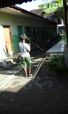 Bambu yang digunakan tukang kayu untuk perbaikan atap rumah kami.