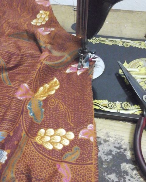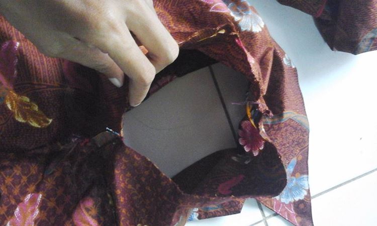 - Kain dibalik ke belakang dan jahit dengan lurus.