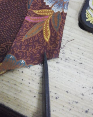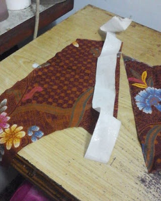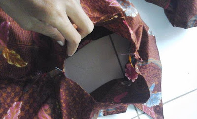 - Bagian kanan sisihkan, sekarang beralih ke bagian kiri. Caranya sama dengan bagian kanan, tapi tidak memakai kain keras.
