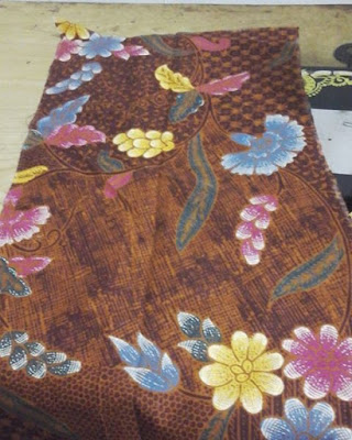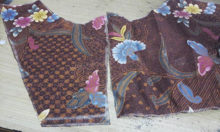 - Letakkan pola di atas kain. Siapkan kapur tulis. Peletakan pola ini jangan sembarangan ya. Perhatikan bentuk dan motif kainnya. Jika kainnya luas, its OK gak masalah. Tapi jika kainnya sempit, jangan buru-buru digunting. Usahakan pola digambar lengkap agar tahu pas atau tidaknya kain.