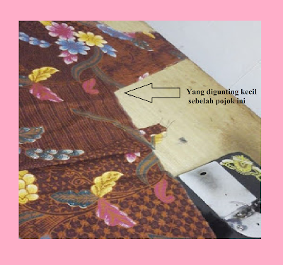 - Beri jarak sekitar 1-1,5 cm pada setiap tepi pola, gambar dengan kapur dan kain siap digunting.
