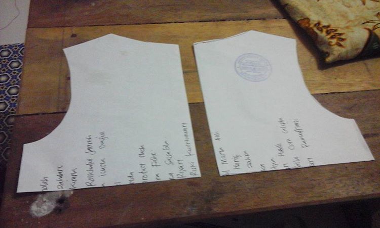 11. Pola siap digunakan. Letakkan ke kain dan gambar polanya. Jangan lupa tambahi 1 cm di setiap sisi pola.