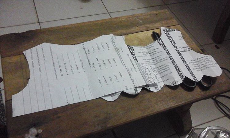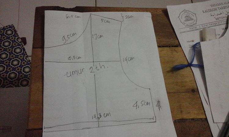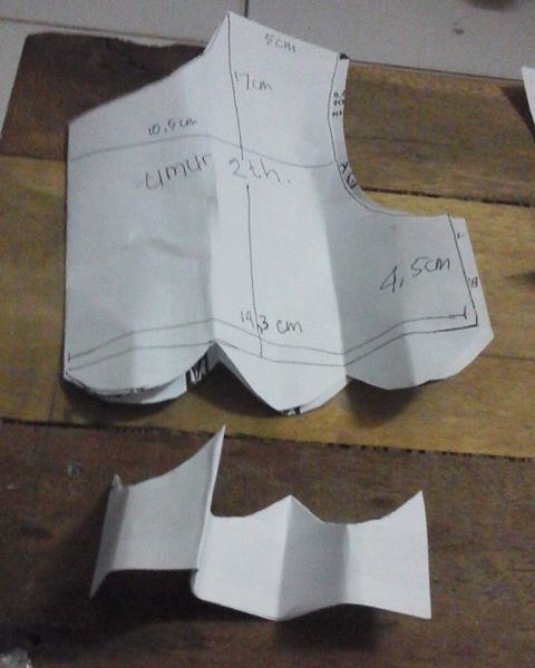 11. Pola siap digunakan. Letakkan ke kain dan gambar polanya. Jangan lupa tambahi 1 cm di setiap sisi pola.