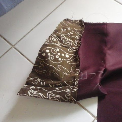 Siapkan kain sisa untuk saku rok. Saya menggunakan kain batik karena sisa kain rok masih sedikit dan pas untuk ban pinggang.