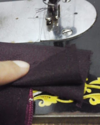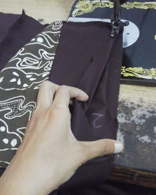 Jahit tepinya. Jangan lupa bagian kiri ada kelebihannya sekitar 2-3 cm