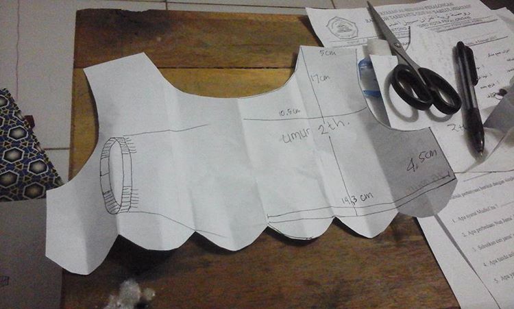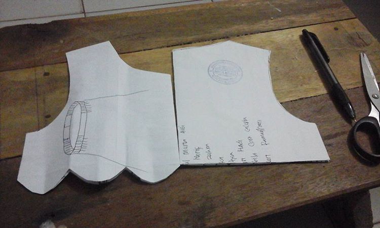 11. Pola siap digunakan. Letakkan ke kain dan gambar polanya. Jangan lupa tambahi 1 cm di setiap sisi pola.